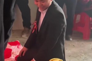 宝宝学祭祖跪拜,当地风俗接亲前置