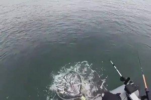 男子乘船捕鱼,遇到一窝鱼聚集一网下去都拉不动!
