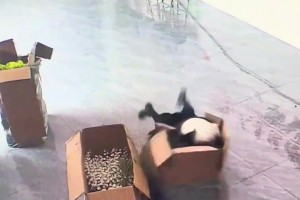 活动结束后剩下许多气球,现场工作人员扎爆处理